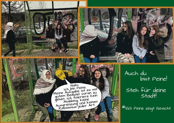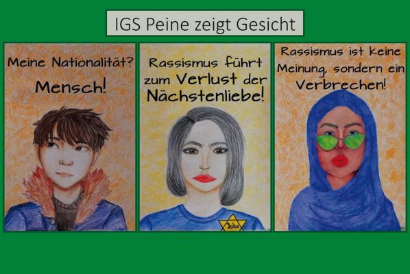Im Rahmen der Internationalen Wochen gegen Rassismus sollte am Freitag, 20.03.2020 unter dem Motto „Peine zeigt Gesicht – Gesicht zeigen – Stimme erheben“ ein Sternmarsch zum Peiner Marktplatz stattfinden, der angesichts der aktuellen Lage leider entfällt. In diesem Zusammenhang ist auch eine Wanderausstellung entstanden, die natürlich nicht im voll geplanten Umfang zu sehen sein wird. Es ist jedoch angedacht, die tollen Exponate im Rahmen des Festes der Kulturen – bunt statt braun am 06.06.2020 auszustellen. Nähere Infos folgen …
