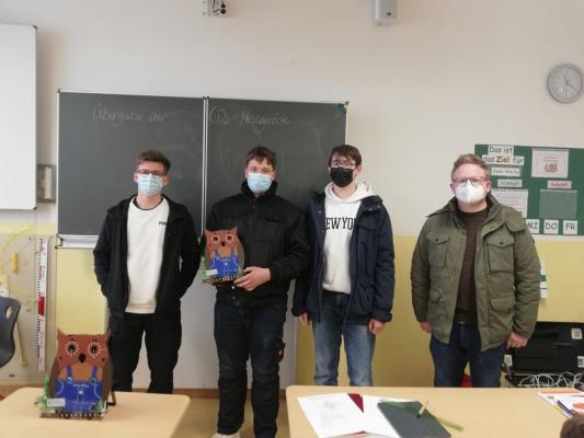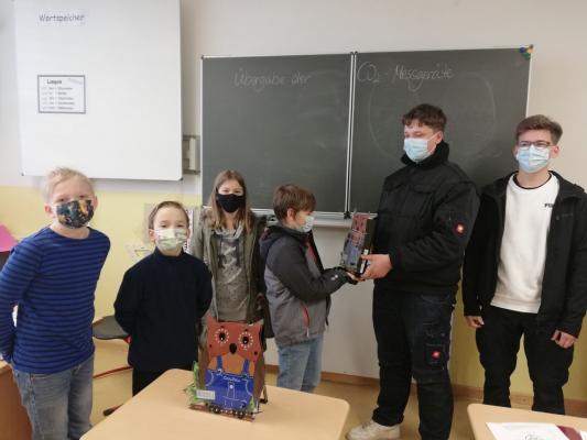 Die Zehntklässler*innen des Wahlpflichtkurses Technik bauten im Rahmen des Unterrichts bereits mehrere Umwelteulen zusammen. Dabei schulten sie ihre Fähigkeiten bei der sachgerechten Montage, beim Löten, beim genauen Arbeiten nach Anleitung und vielen weiteren Fertigkeiten und Kompetenzen. Das Bauprojekt CoolZeLa ist damit so viel mehr, als nur ein CO2-Messgerät. Die ersten Umwelteulen wurden bereits von einigen Vertreter*innen des Wahlpflichtkurses Technik in Begleitung von AWT-Fachbereichsleiter Thomas Seifert an die Kinder der jüngeren Jahrgänge, die in der Notbetreuung sind, übergeben.
