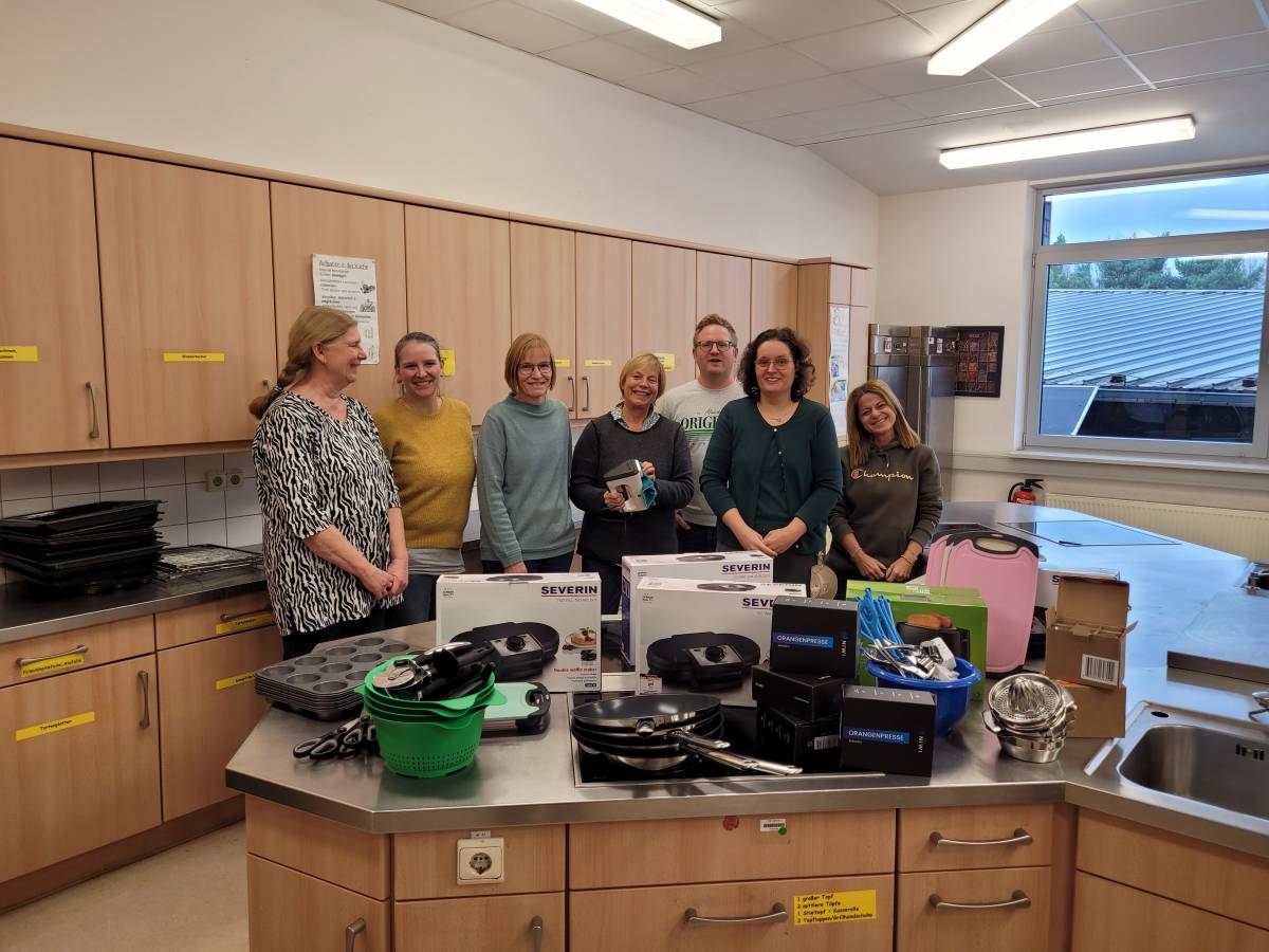 Die Schulküche, die bereits seit rund 25 Jahren in Betrieb ist, zeigt an verschiedenen Stellen Gebrauchsspuren. Um den Zustand zu verbessern und den Schülerinnen und Schülern ein modernes, funktionales Umfeld zu bieten, war eine Aktualisierung dringend notwendig. Mit den bereitgestellten Mitteln konnte eine breite Palette an Küchenutensilien angeschafft werden. Von neuem Besteck über Teller bis hin zu praktischen Küchenhelfern wie Zitronenpressen wurde die Ausstattung der Schulküche auf den neuesten Stand gebracht. Diese Investition verbessert nicht nur die Arbeitsbedingungen für Schülerinnen und Schüler, sondern trägt auch zur Qualität des Unterrichts bei. Dank der Unterstützung des Fördervereins konnte der Zustand, der in die Jahre gekommenen Küche, entscheidend verbessert werden. Der Fachbereich AWT freut sich, mit dieser Modernisierung eine zeitgemäße Lernumgebung bieten zu können, die nicht nur die Kreativität der Schülerinnen und Schüler fördert, sondern auch ihre Freude am Lernen stärkt.