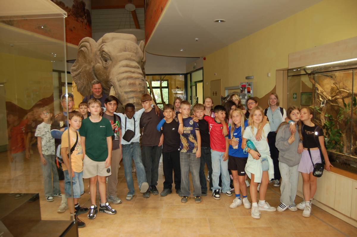 Am Ende machten wir noch ein Foto vor einem Elefanten-Skelett und fuhren mit der Straßenbahn wieder zurück zur Jugendherberge.